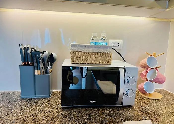 A kitchenette is featured at the apartment. Grand Canal View Balcony Cozy Staycation Netflix apartment is a stone's throw from Ayala - McKinley Stadium UV bus station.